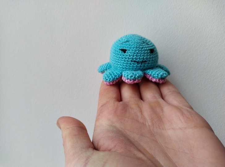 The size of the octopus is 3 inches in diameter including the legs, but if you choose a thicker yarn and an appropriate hook size, you can get a larger toy. Conversely, selecting a thinner yarn will result in a smaller toy.