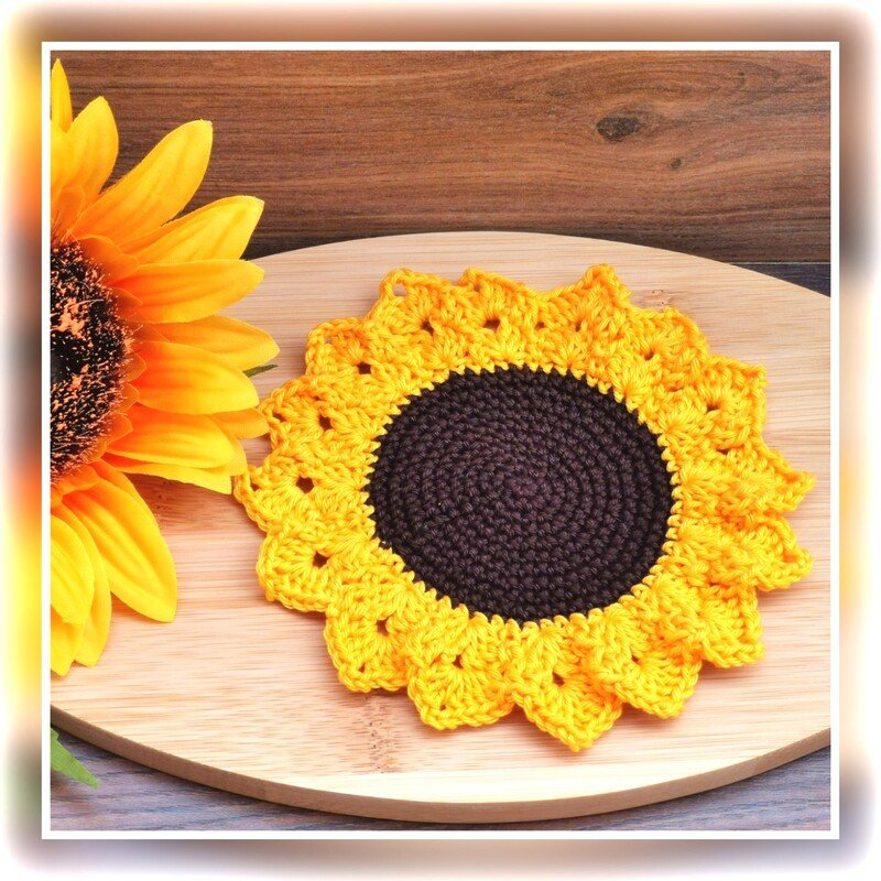 This beautiful coaster brings a touch of summer into the house. A very pretty hole pattern that even beginners should have fun with. As the inner part is made with single crochets only, your glass/cup will be stable and won't wobble.