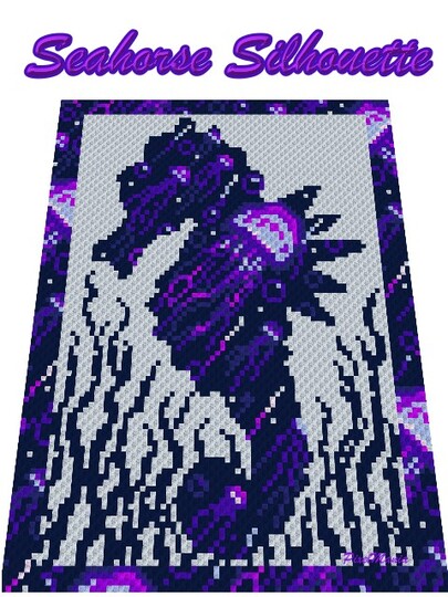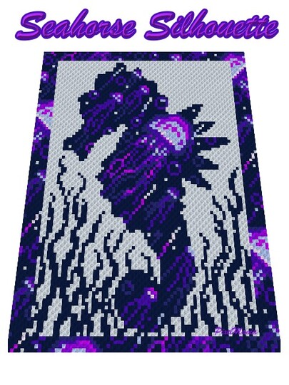 Seahorse silhouette is a digital chart that can be used for different crochet techniques. Here: corner to corner = C2C or Mini C2C.