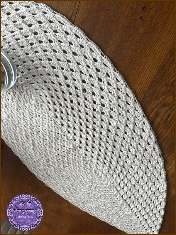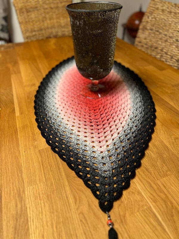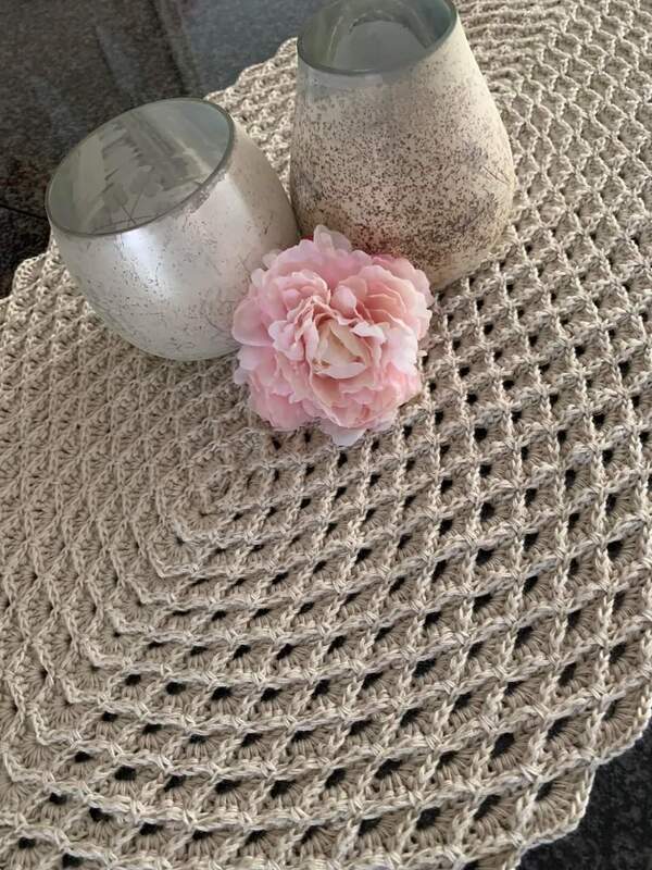 Dieser Tischläufer wird mit einem speziellen Anschlag begonnen, den ich Onschlag genannt habe. Er ist von beiden Seiten behäkelbar, was hier zu einer wunderschönen Mitte führt. Diese Art des Anschlags ist nicht schwierig und ausführlich erklärt. In der Anleitung findest Du eine Verlinkung zu einem Video-Tutorial bei YouTube.