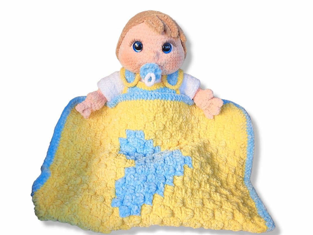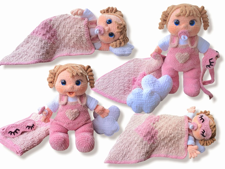 With the purchase of this product you will receive two detailed crochet patterns in PDF format, not the finished amigurumi. In the instructions I describe step by step how to crochet the outfit, the blanket and the accessoires. The instructions have 26 pages and are provided with many colorful pictures. The patterns does NOT include a basic crochet course. In the second PDF (attachment) I describe the c2c crochet technique on 8 illustrated pages.