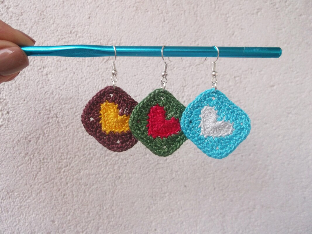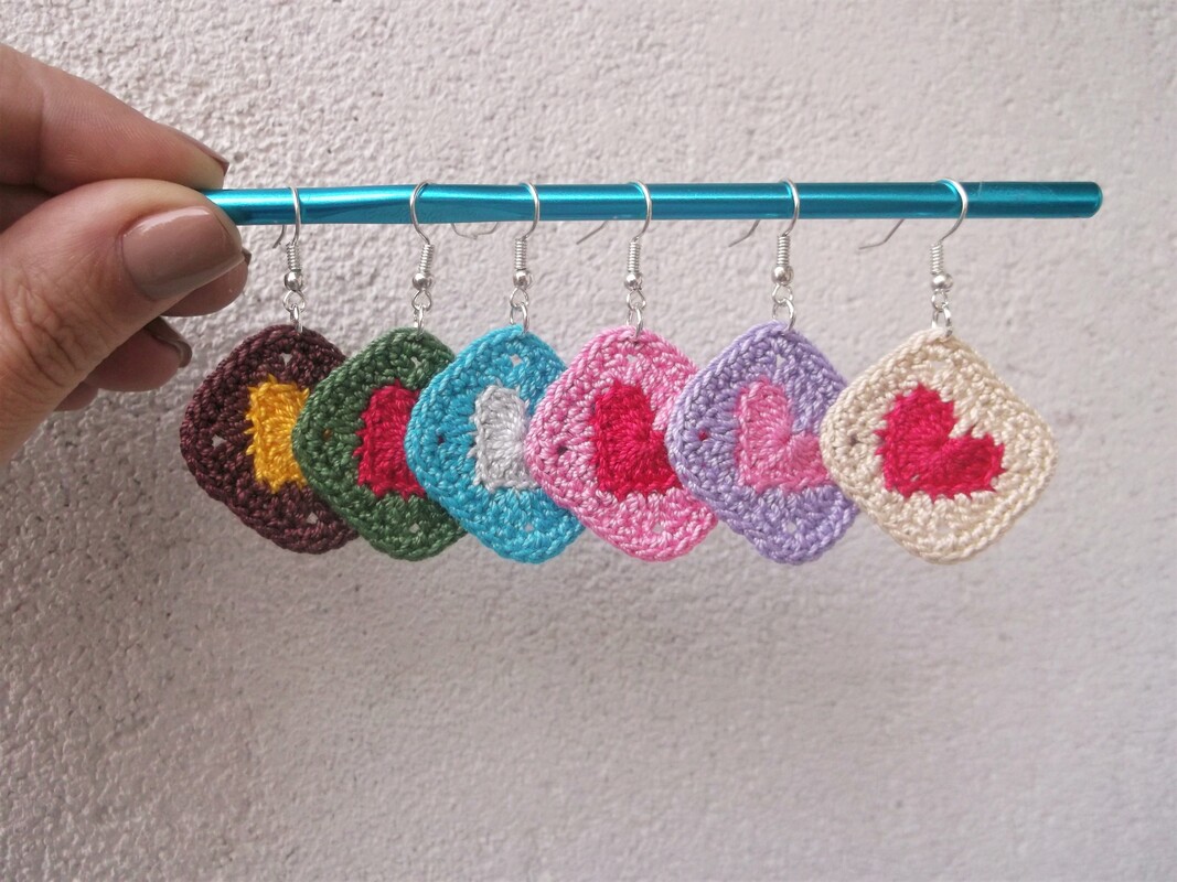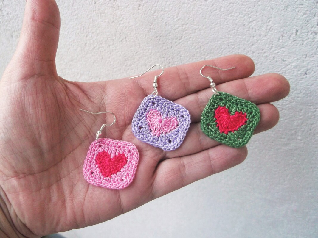 Mini Heart Granny Square earrings.