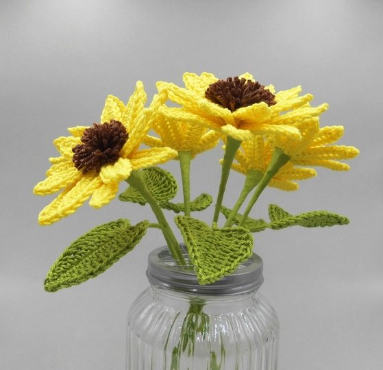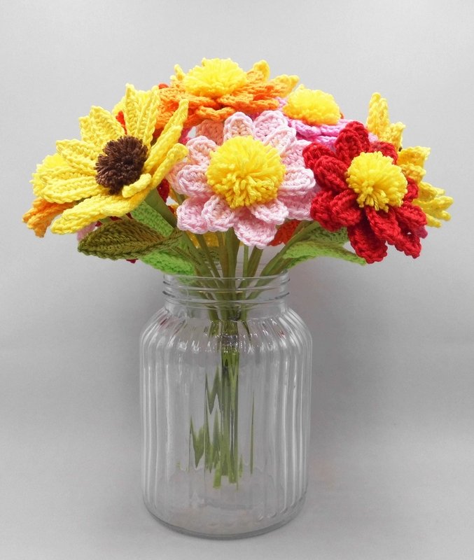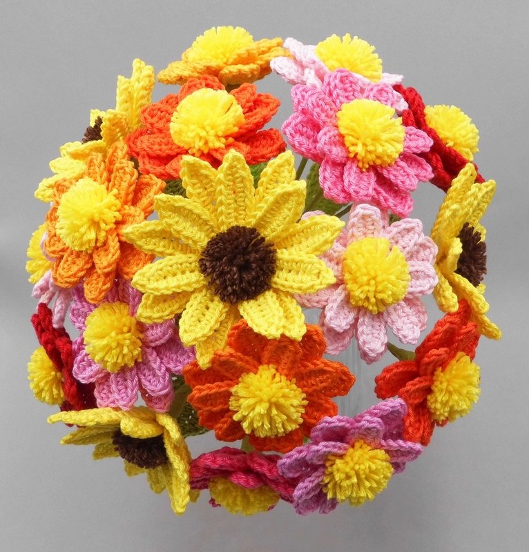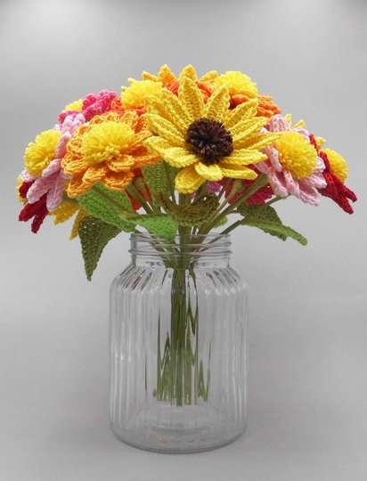 You can crochet the flowers from small scraps of yarn in your favorite colors and arrange them over and over again - and of course, crocheted flowers last much longer than real ones.