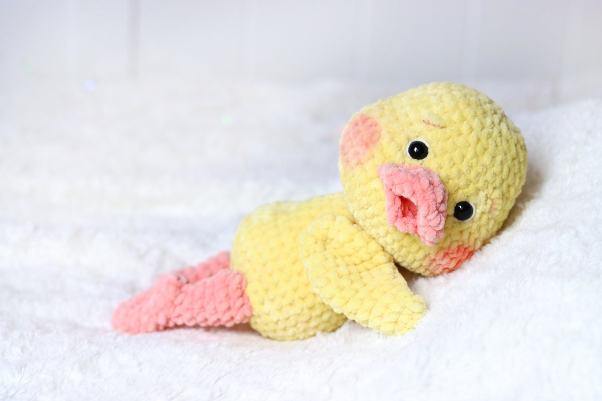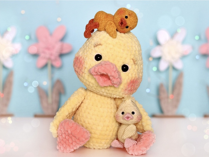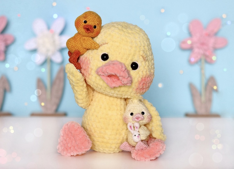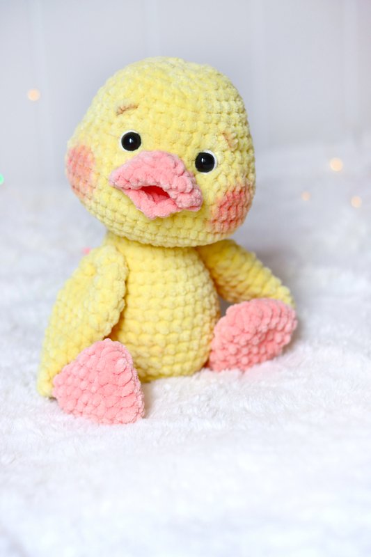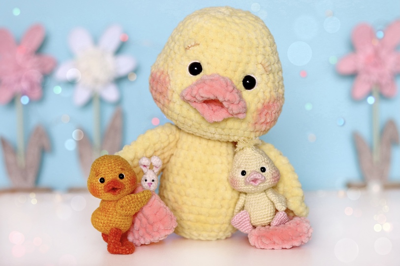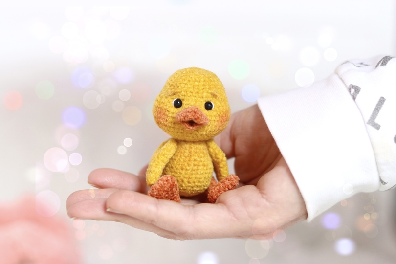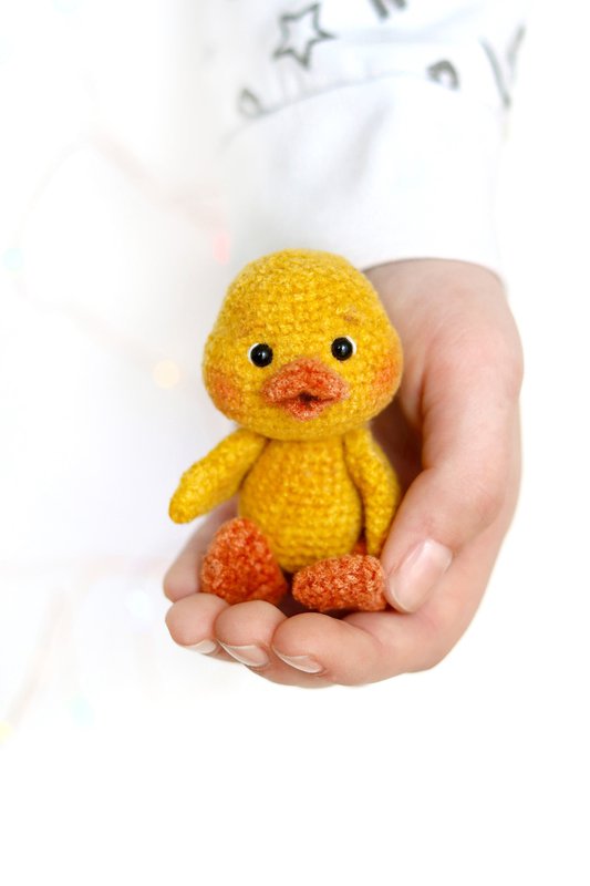 The size of the duckling will depend on the chosen yarn, the thicker the yarn, the more it will be needed for