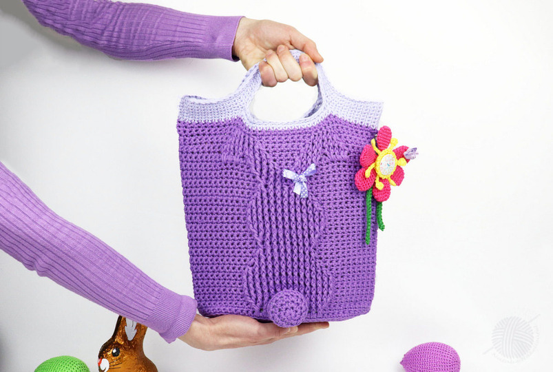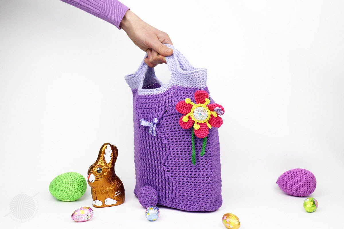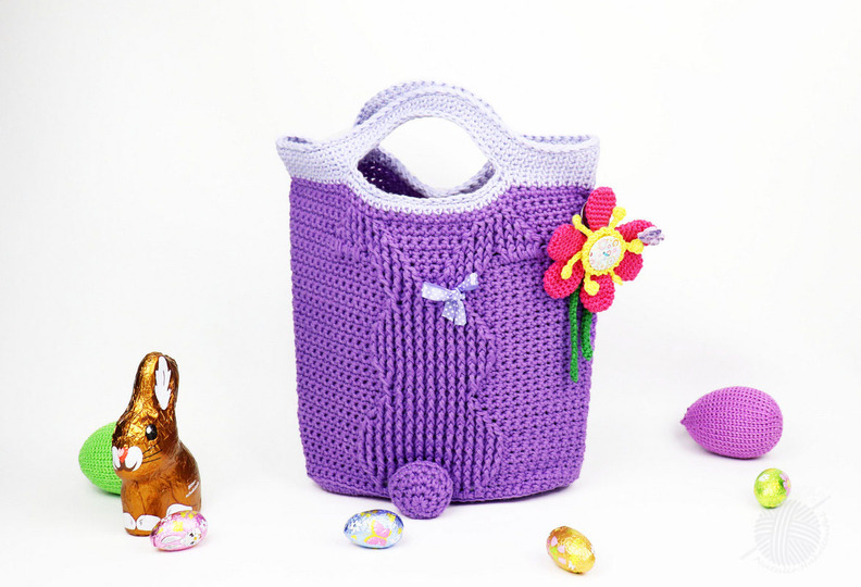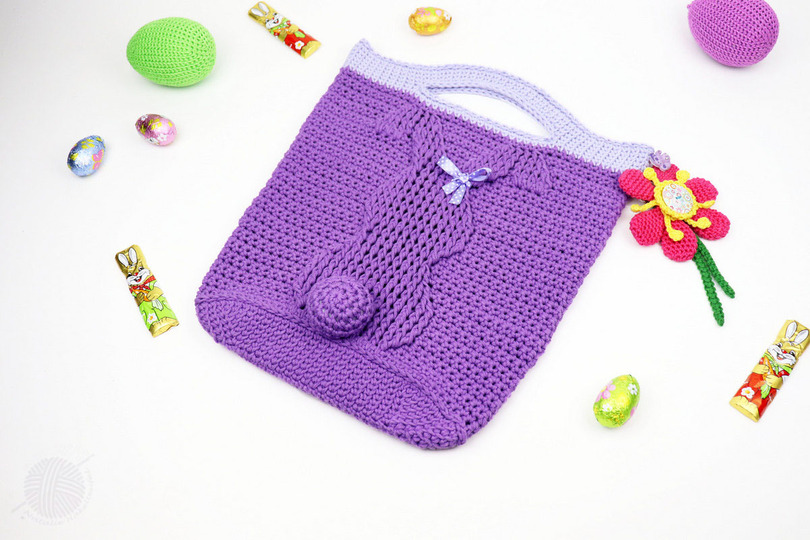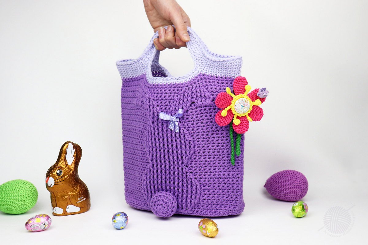 Diese Häkelanleitung besteht aus bebilderter Anleitung zum Häkeln von einer Tasche mit dem Reliefmuster "Bunny" in zwei Größen, 25 x 32 cm und 30 x 32 cm, (gemessen mit Henkel, ohne Boden). Die Größe der Tasche kann man auch sehr leicht verändern. Die Tasche kann man entweder als Shopper, Osterkorb oder Geschenkverpackung benutzen.