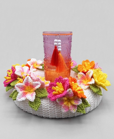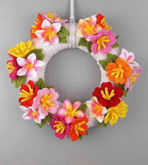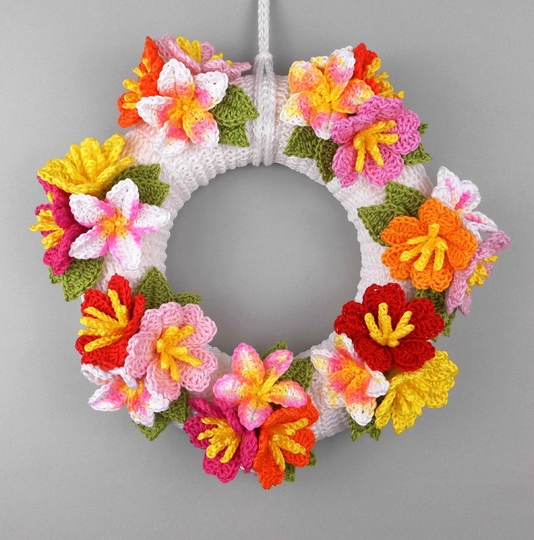Of course, you can crochet your flower wreath, according to your taste, with more or less flowers than shown here in your favorite colors.