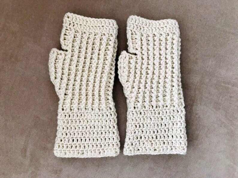 These fingerless mittens feature the front post double crochet stitch and back post double crochet stitch that gives it a great texture and makes them look thick and cozy. They are fun, quick and easy to make. Wear these gloves with any outfit for a charming look!