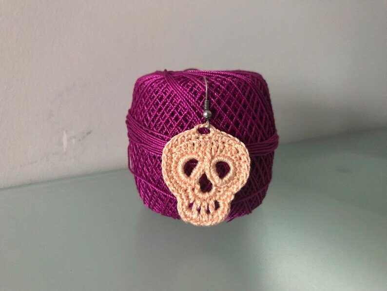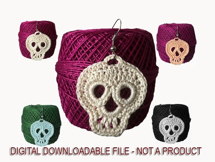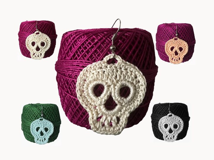 I am designing knit and crochet patterns. While designing my patterns, I take care that they are unique. These skull earrings patterns are also a unique patterns. You can work earrings, necklace,applique or etc... I think you will enjoy working with this pattern. You can work the pattern with any cotton lace thread. The size can change when working with different threads and hook.