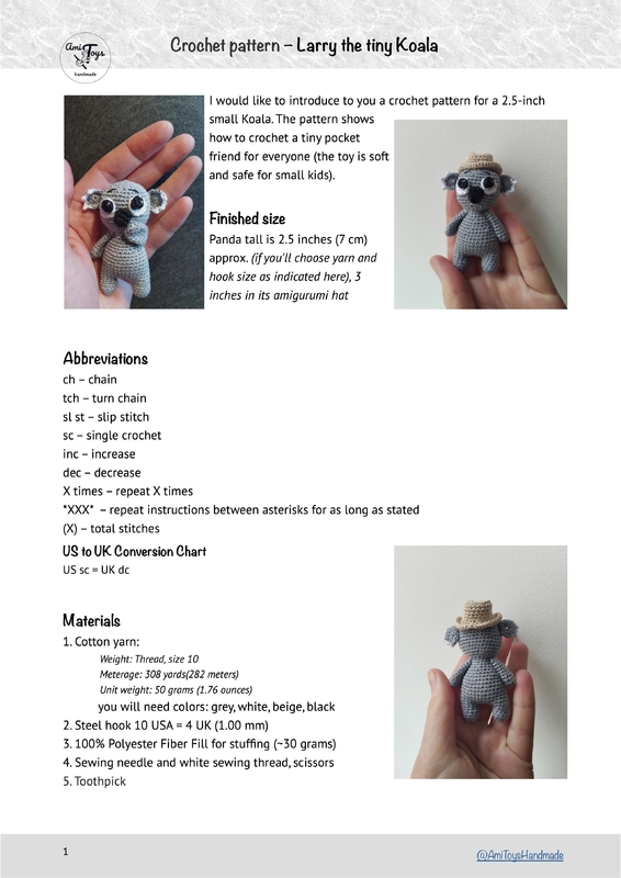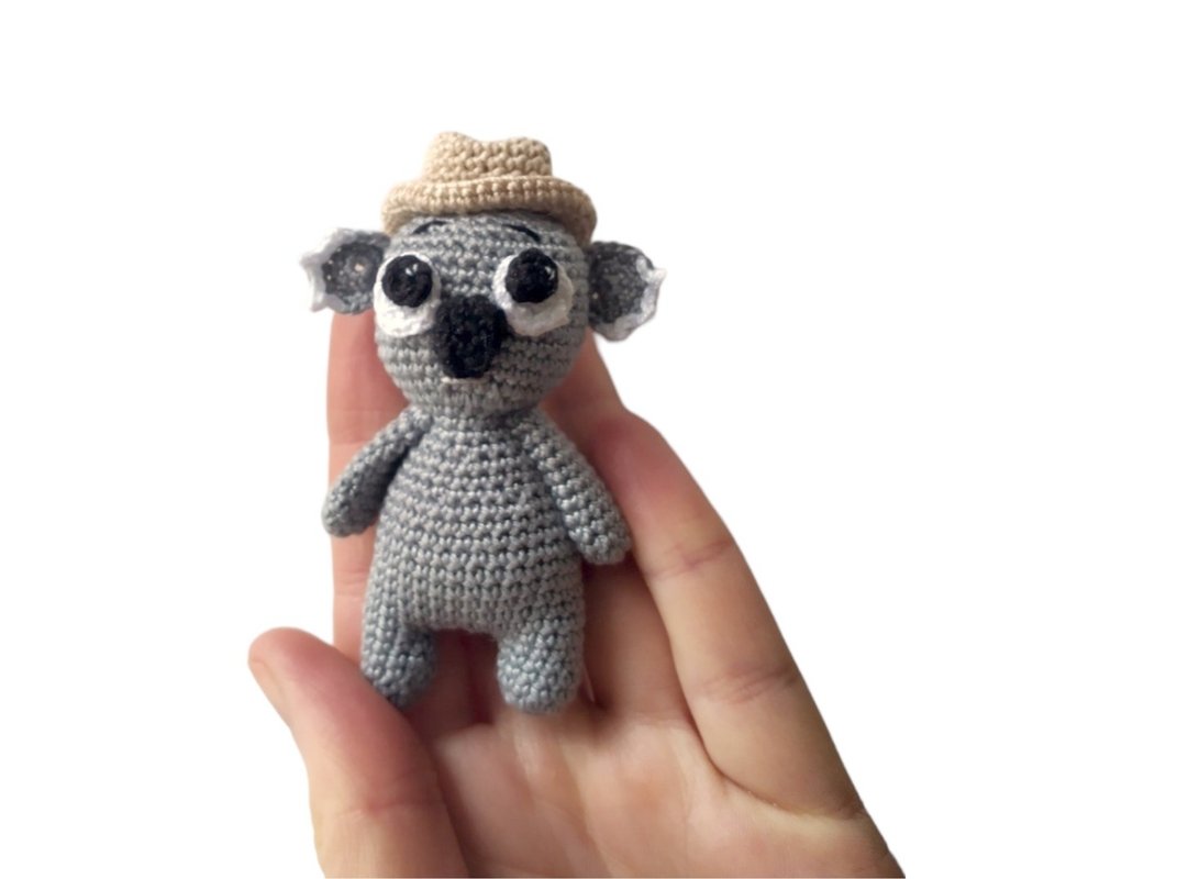 I would like to introduce to you a crochet pattern for a small Koala in a hat. The pattern shows how to crochet a tiny pocket friend for everyone (the toy is soft and safe for small kids).