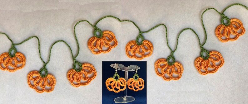 This beautiful pumpkin pattern was designed by me. You can work great projects with this design. You can wear it as an earrings, you can use decorate your home or your garden as a garland or ornament, you can even wear it as a scarf and you can incorporate it into your halloween outfits.