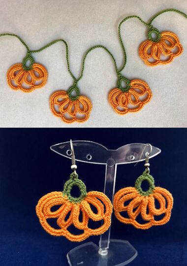 You can work 2 pcs. pumpkins for the earrings, and any number of pumpkins for the Halloween garland or scarf.