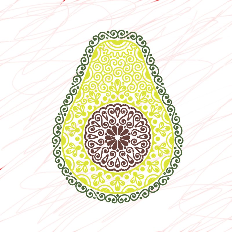 Avicado Mandala print. Tropical fruit for crafts, fashion design, furniture