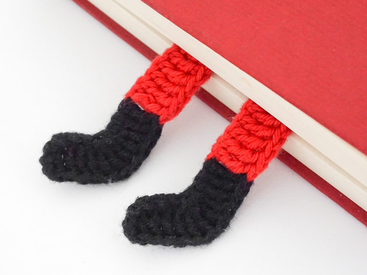 The finished bookmark has a length of 33 cm. The finished mini Santa Claus has a height of 5.5 cm. The finished mini noso Santa Claus has a height of 6.5 cm.