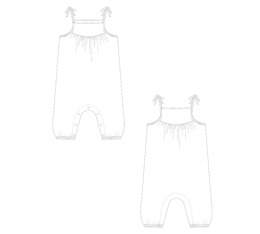 With the NELE sewing pattern you can make a cute and comfortable outfit for babies and toddlers with two versions: a long overall with snaps at the crotch, and an airy short romper with bow straps, perfect for summer. NELE is designed for lots of movement and is great for crawling, playing, and exploring.