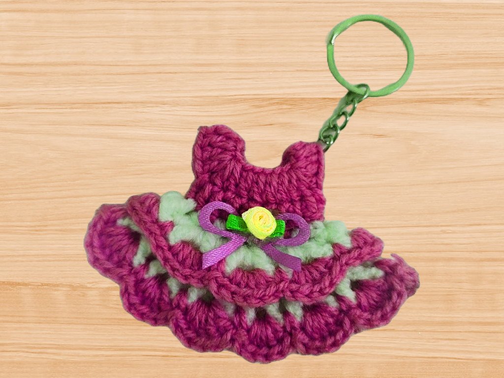 With this beginner-friendly crochet pattern, you can create an adorable mini dress keychain — perfect as a bag charm, gift, or craft fair item. The pattern is clearly written in US crochet terms and includes: