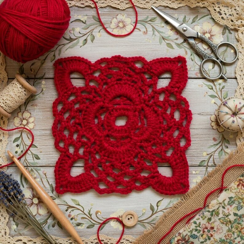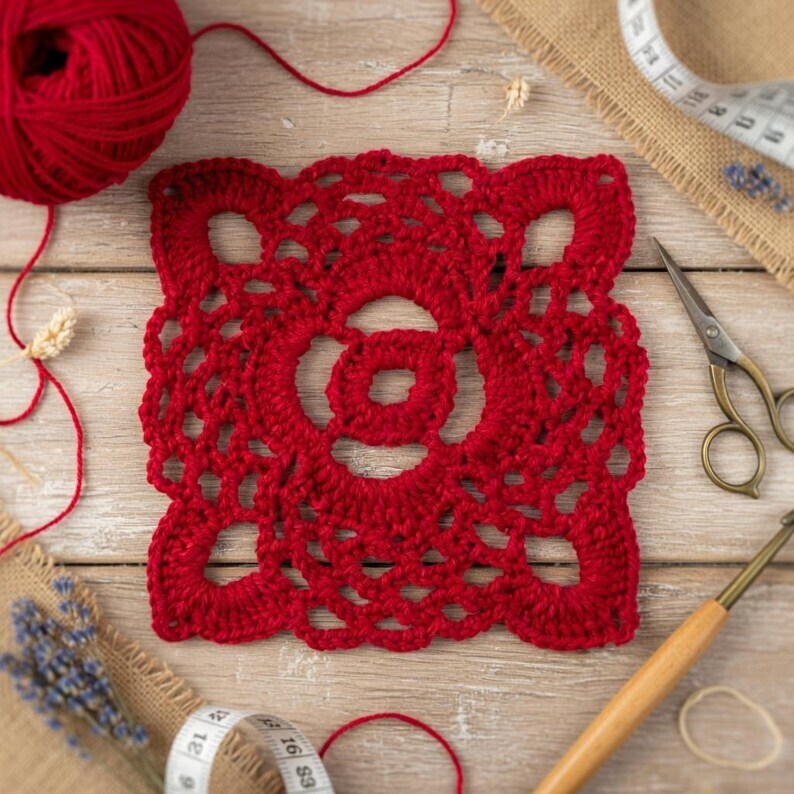 Create charming square-inspired crochet motifs with this easy beginner-friendly pattern. Perfect for boho table décor, coasters, placemats, or handmade gifts.
