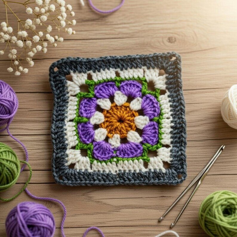 This versatile crochet square is perfect for combining into blankets, baby items, cushions, bags, or decorative home projects.