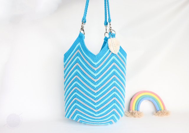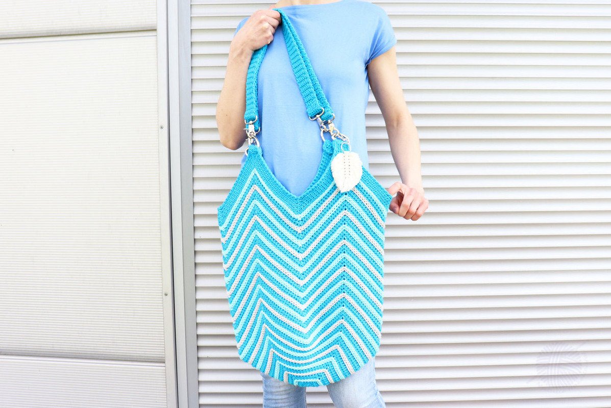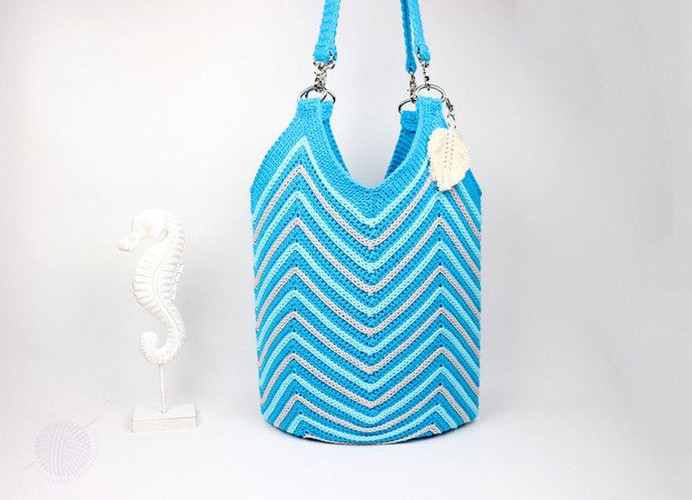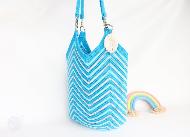 This crochet pattern consists of illustrated tutorial for crocheting a bag, size 43 cm x 54 cm (measured without handle). You can easily change the size of the bag by crocheting the bottom smaller. The bag can be used either as a shopper or as a beach bag (casual bag). Treat yourself to a bag with a multicoloured pattern in your favourite colours.