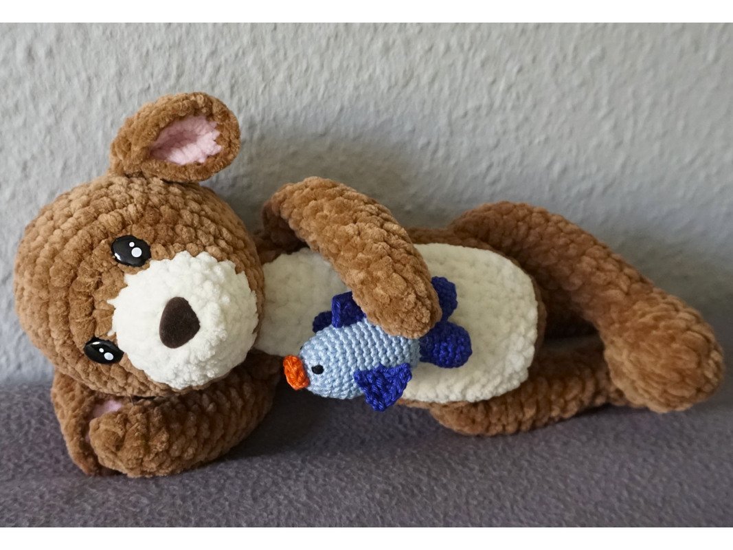 In the crochet instructions, the manufacture of the Otter Otti and his Fish is described in Englisch (US) and with numerous pictures on a total of 13 pages. In our instructions there is always a picture for each step, so that you can easily rework.
