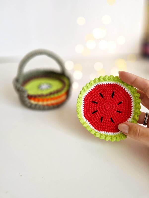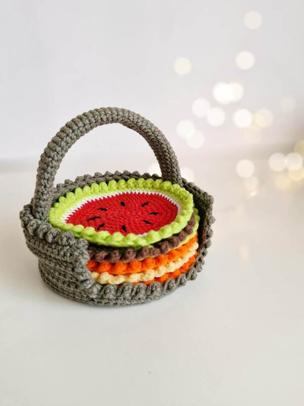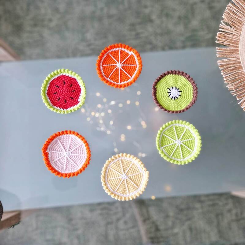 And the best part? This set includes not only the fruit coaster patterns but also the pattern for the matching coaster holder, ensuring that you always have a place to store your coasters when they're not in use.