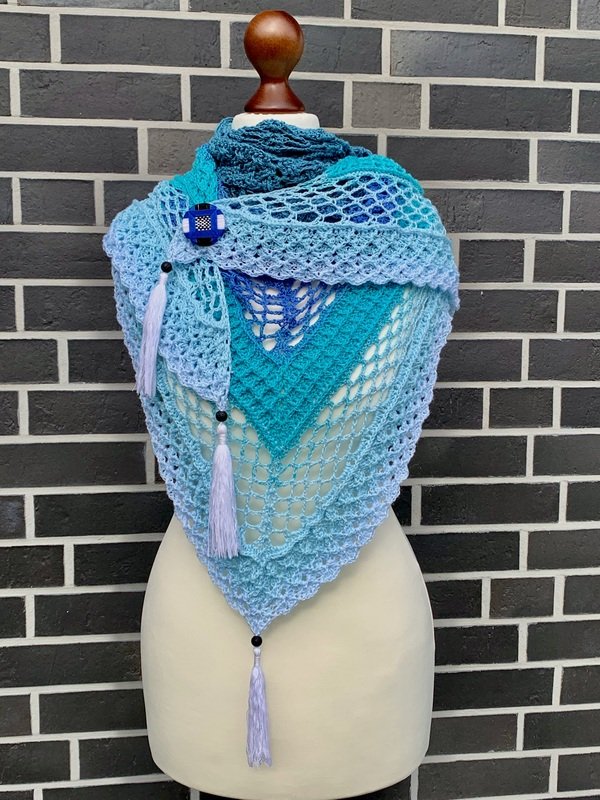 This beautiful airy shawl from the Coastal collection is perfect for summer.
