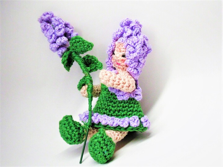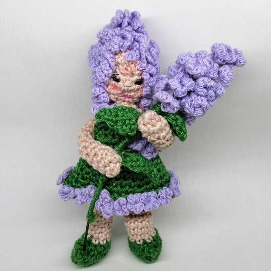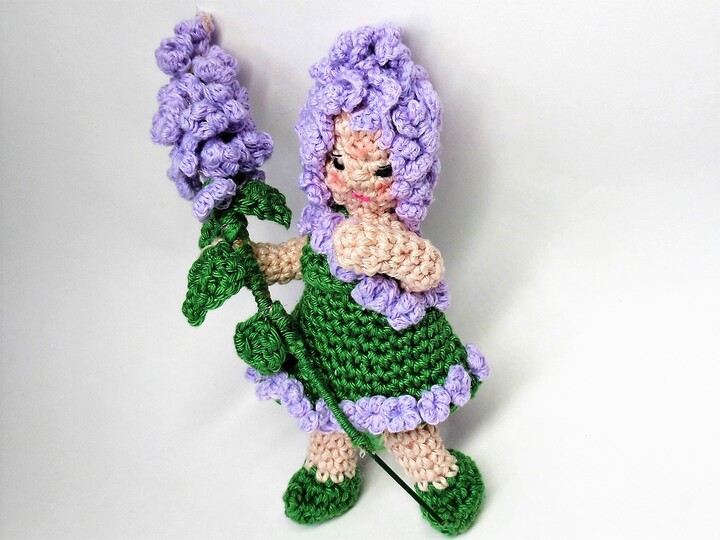 Das Blumenkind wird etwa 15 cm groß, der Fliederzwieg etwa 16 cm.