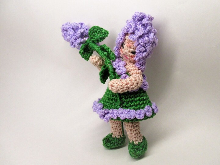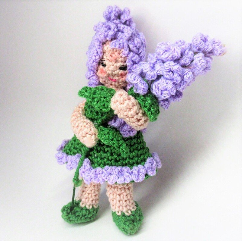 Im Frühling steht der Flieder mit seinen duftenden Dolden in voller Blüte. Leider verwelkt er in der Vase recht schnell. Das kann dir mit dem Blumenkind Flieder nicht passieren.Dekoriere einen Jahreszeitentisch oder deine Fensterbank mit dieser süßen Elfe!. Das kleine Püppchen hat biegsame Arme und beine, so dass es immer wieder unterschiedliche Posen einnehmen kann. Es hat fliederfarbene Locken und trägt einen kleinen Fliederzweig im Arm.