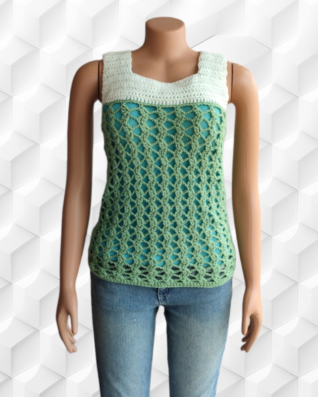 The crochet lacy summer top is the perfect top for the spring and summer weather. It’s a very easy pattern that even for crochet beginners. It uses simple crochet stitches to achieve this lacy look. It contains instructions for 5 sizing options. 30-34 (36-40,42-44, 46-48,50-52) Bust size in inches.