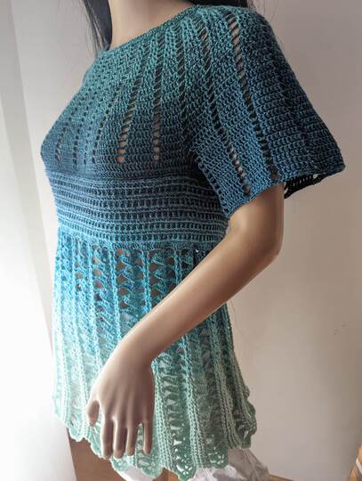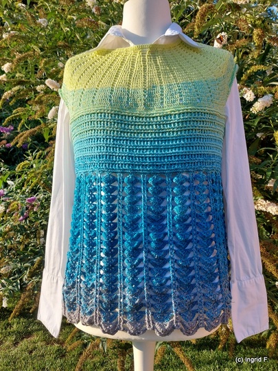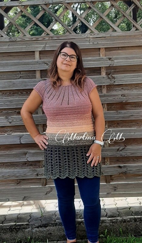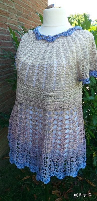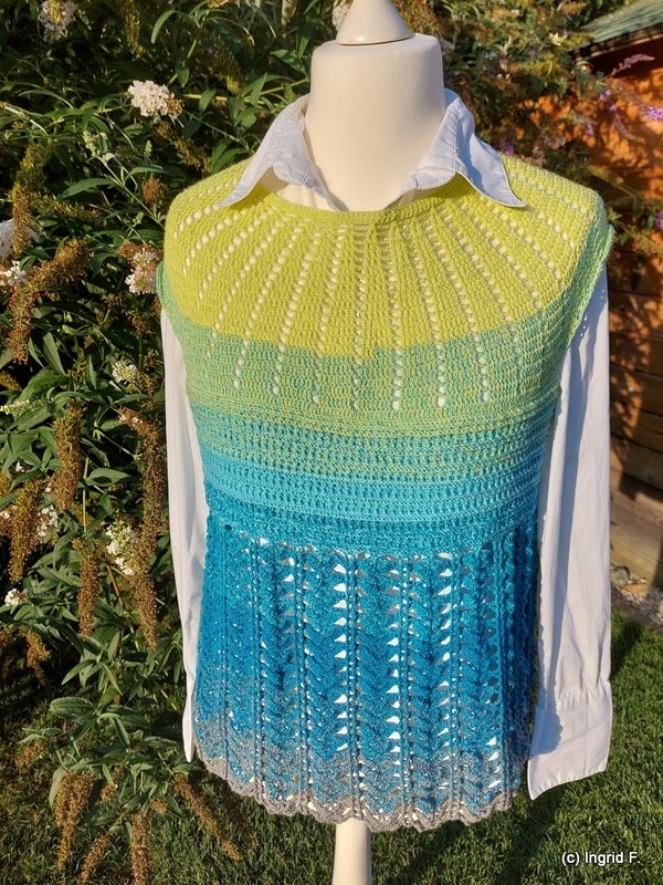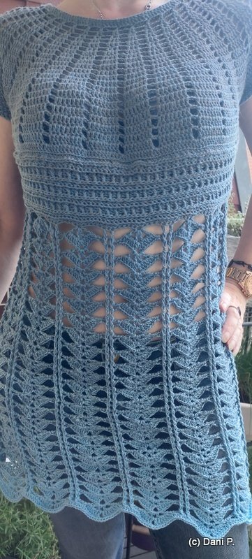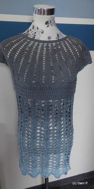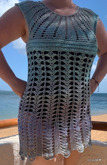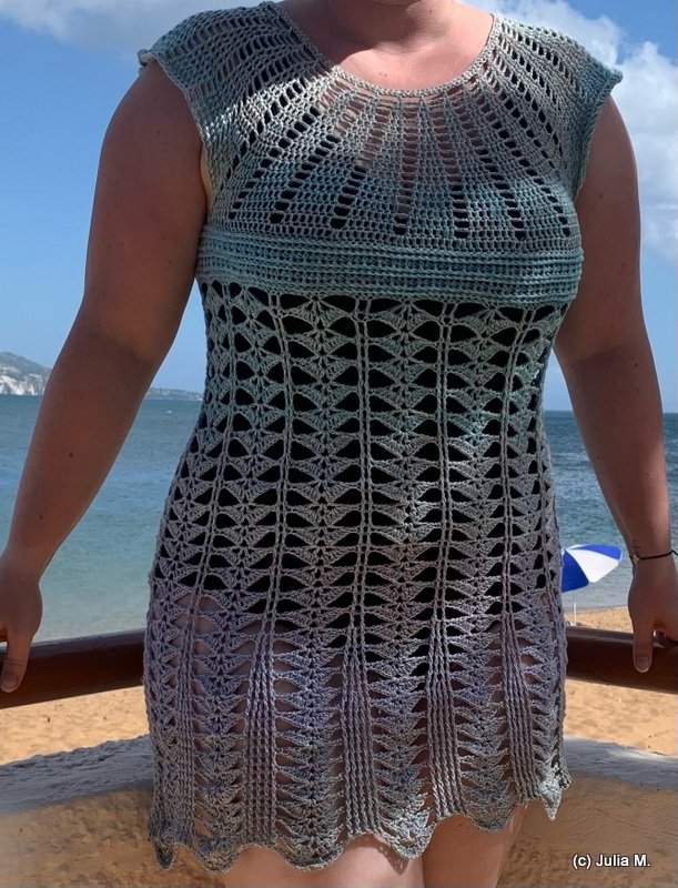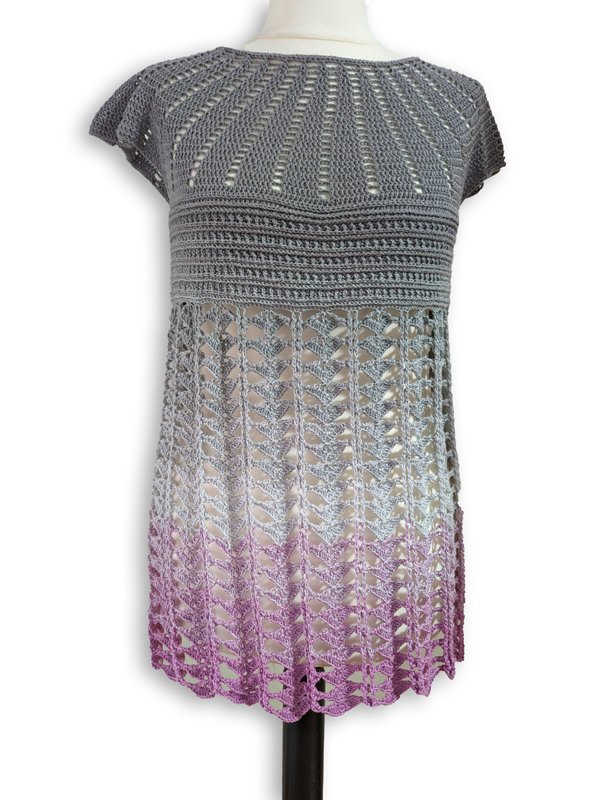 You can work New Beginnings as a dress or tunic. A simple, airy piece for summer or the beach, quick to crochet and an eye-catcher, no matter the colour.