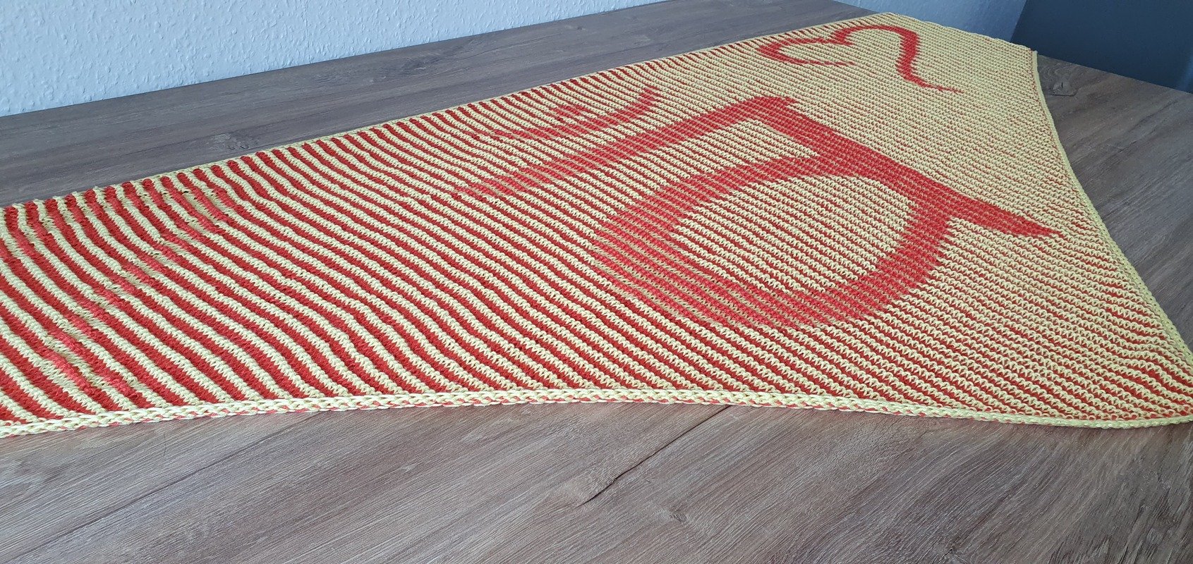 This pattern guides you step by step through creating a unique motif shawl, using the technique of shadow or illusion knitting. With this special method, the motif only becomes visible when viewed from the side – a striking effect with real wow-factor!