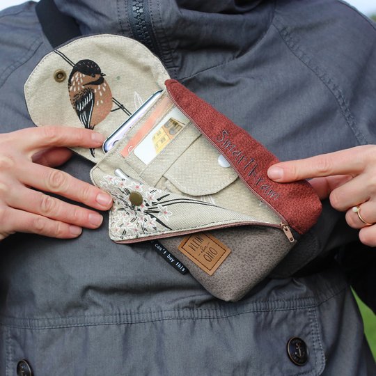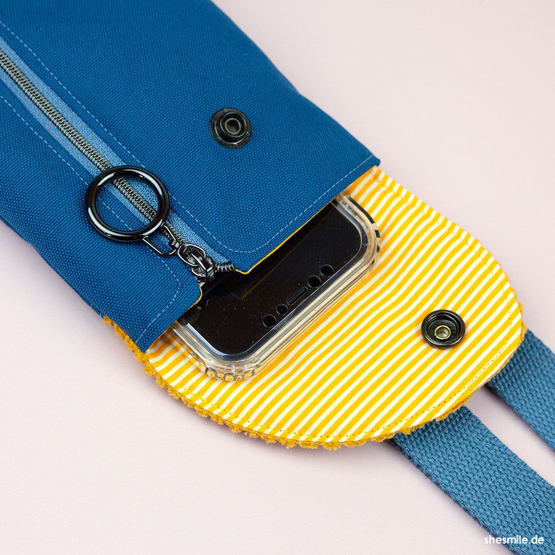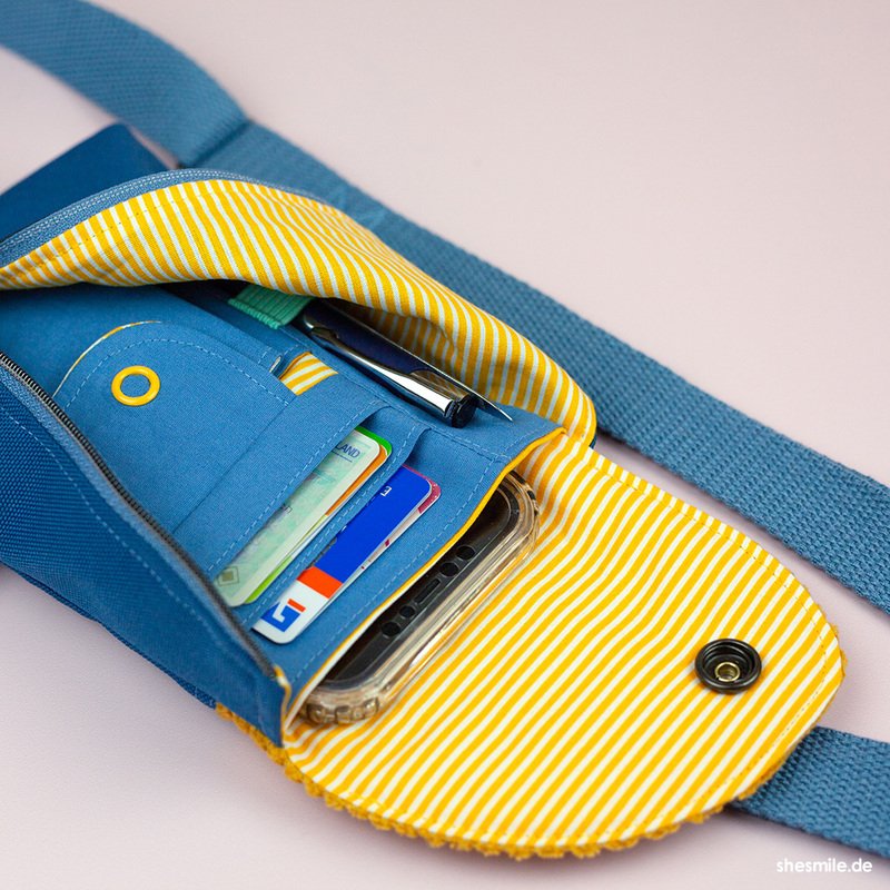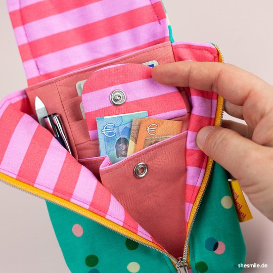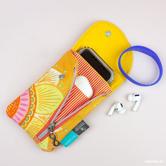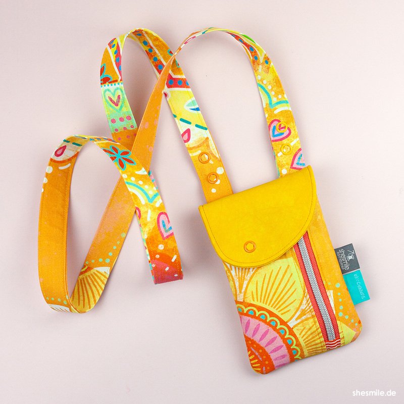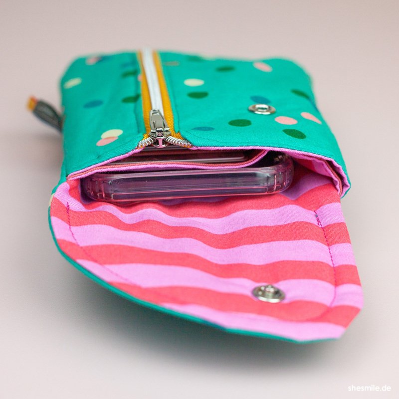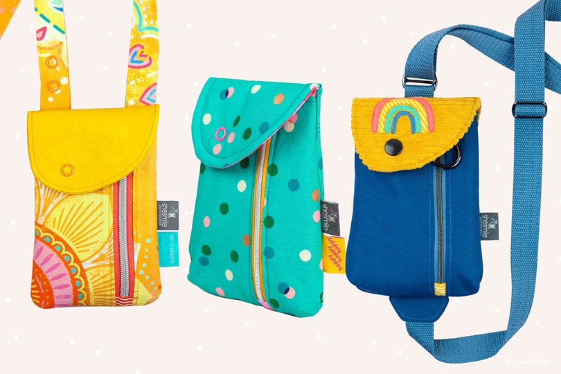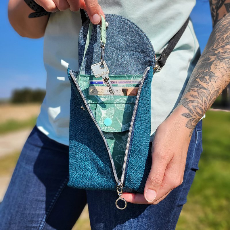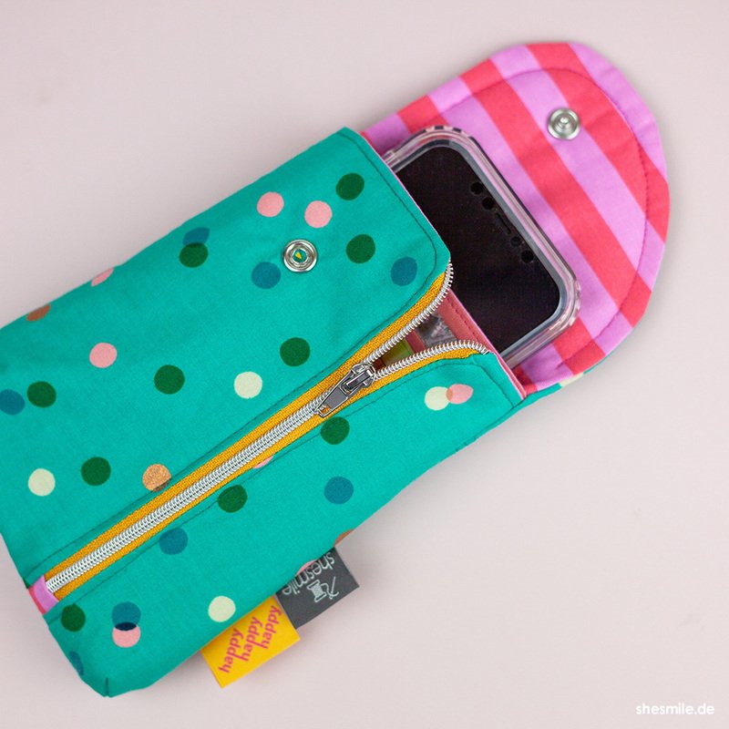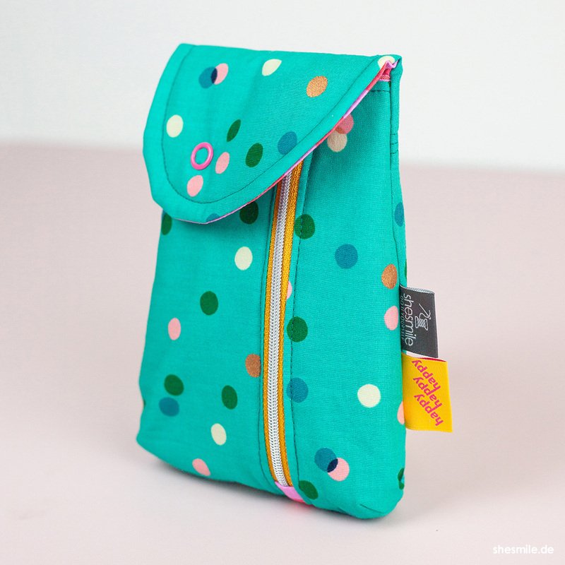 Nähanleitung und Schnittmuster in 2 Größen gestaltet als PDF-E-Book für einen Handytaschen-Geldbeutel Smartkram.
