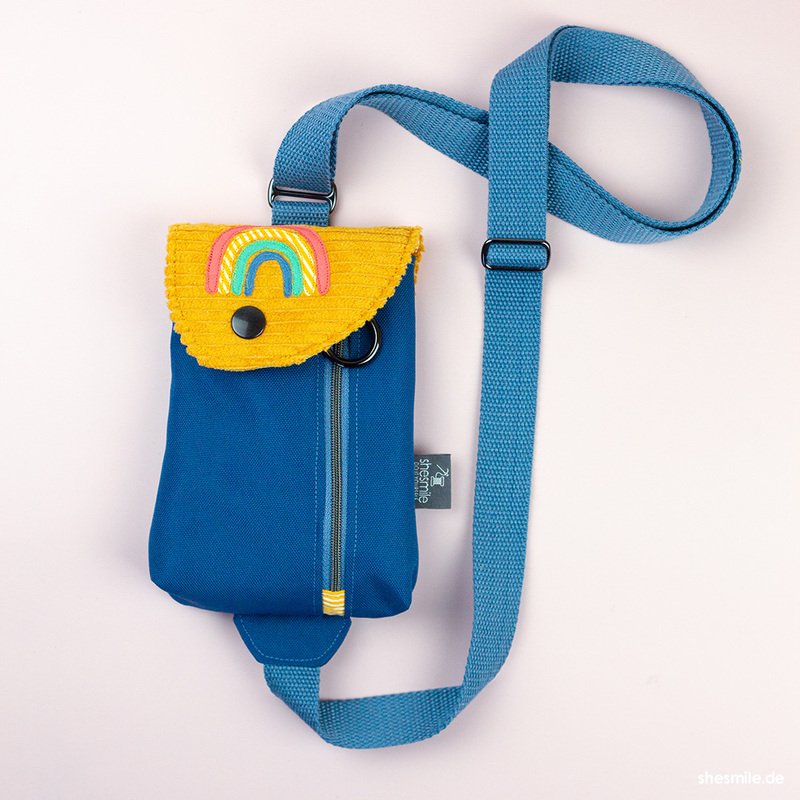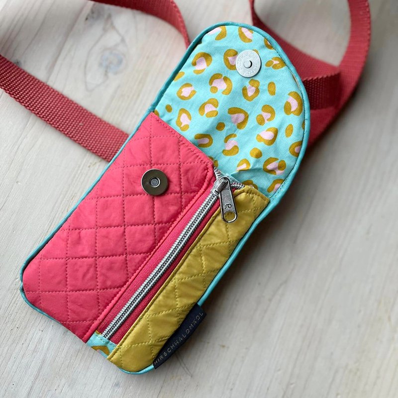 Wähle aus verschiedenen Größen und Modulen: Schnittmuster in klein (für Handys inklusive Hülle bis 85 x 155 mm Außenmaß) oder in groß (für Handys inklusive Hülle bis 95 x 175 mm Außenmaß). Mit oder ohne 3 cm Tiefe für mehr Stauraum.