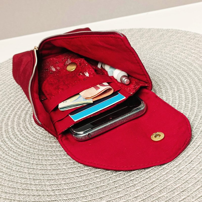 Innenleben 1: Eine Handytasche mit zusätzlichem Steckfach.