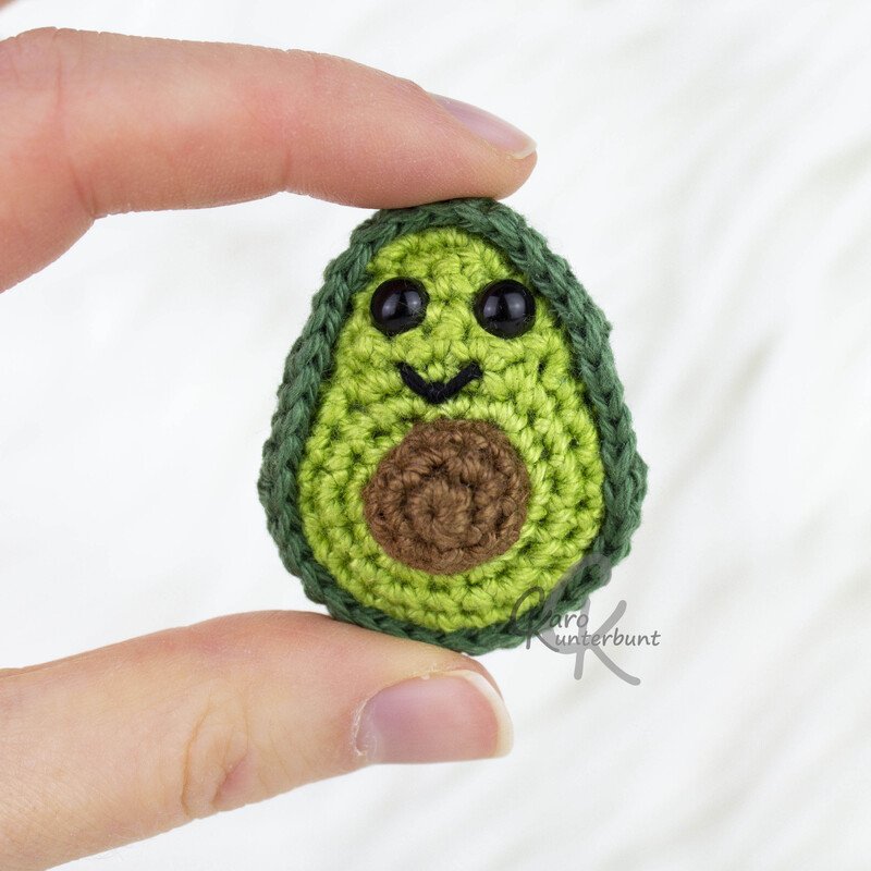 Das gute an der kleinen Avocado: Sie wird in einem Stück gehäkelt und nur der Kern muss extra angenäht werden!