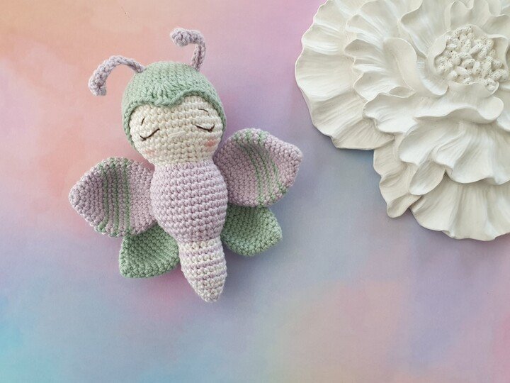 This easy-to-follow pattern contains 12 pages with detailed instructions, lots of progress pictures explaining how to crochet and assemble all the parts to make this butterfly. It also includes great tips e.g. for color changes.