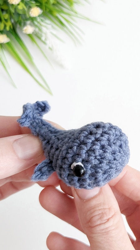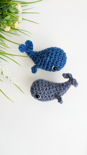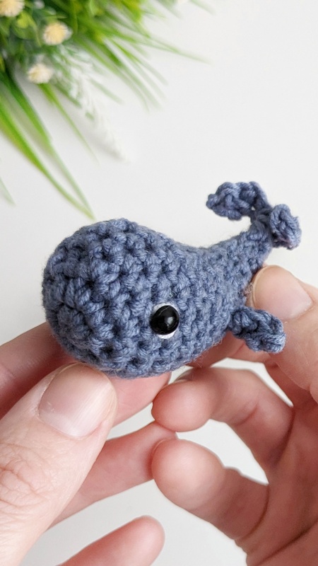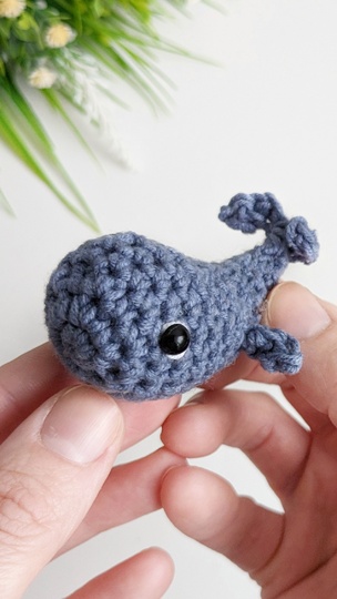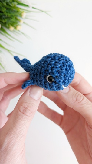This mini whale is super quick to make! The finished toy is approximately 7cm (2.76 inches) long with cotton yarn and 3 mm crochet hook, worked in the round with NO sewing!