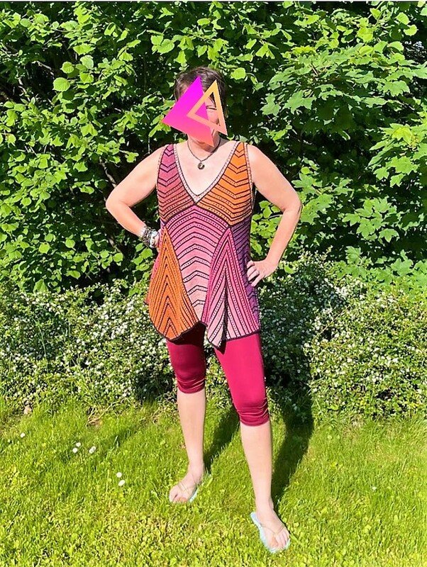 Der Sommerkarl ist ein luftiges, nahtlosese, ärmelloses Hängerchen in A-Linie. Als Tunika zu tragen oder zum "Drüberziehen" für Strand und Freibad. Gestrickt in Patchworktechnik mit leichtem Lochmuster. Das heißt es wird nichts zusammengenäht sonder Patch für Patch aneinandergestrickt.