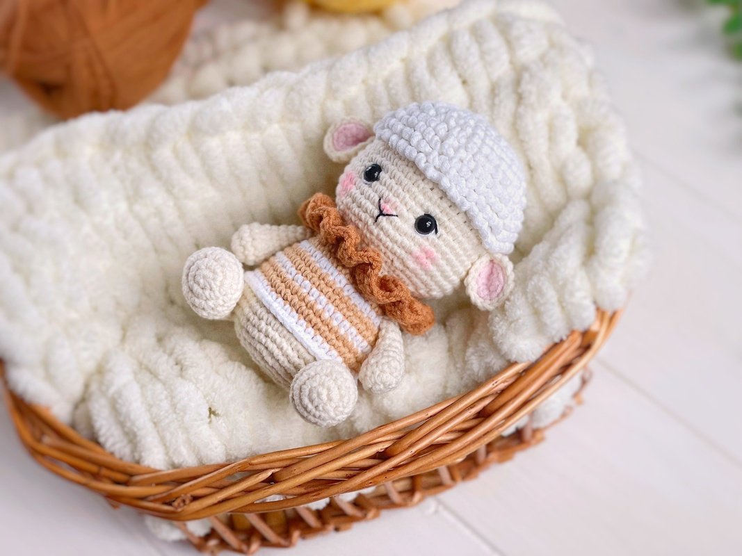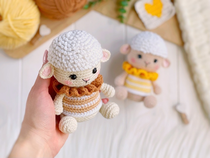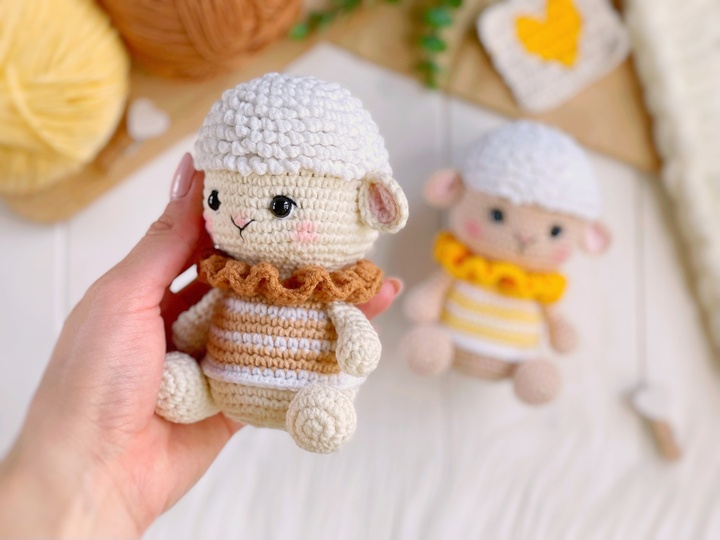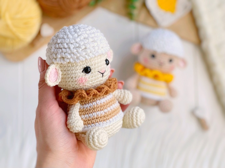 The crochet pattern is in PDF format consists of 11 pages of the detailed, step-by-step pattern how to crochet lamb.