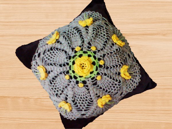 Round Doily Cushion Pattern Consists of written description with details and photo tutorials.