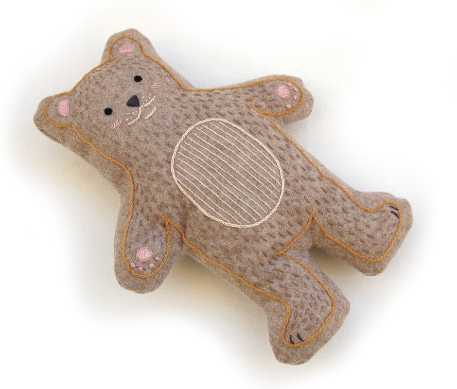 PDF Tutorial and sewing tutorial for this beautiful handmade embroidery stuffed animal teddy bear.