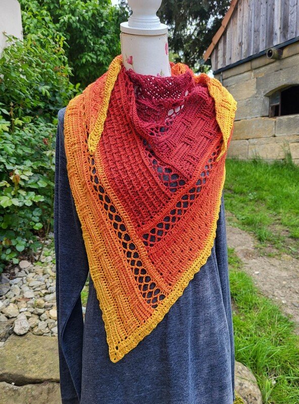 The Akaste Triangular Scarf is a truly unique and eye-catching accessory for crochet enthusiasts. Unlike traditional scarves, this piece is neither symmetric nor asymmetric, embodying a one-of-a-kind design that is sure to turn heads. This one-of-a-kind scarf is crafted with a combination of front post and back post stitches, giving it a truly eye-catching texture. Whether you're a crochet enthusiast or a beginner looking for a challenge, this scarf is a must-have accessory for your collection. Akaste is a true statement piece. Its distinct shape and intricate details make it an ideal accessory for any occasion.