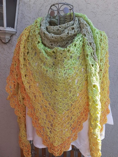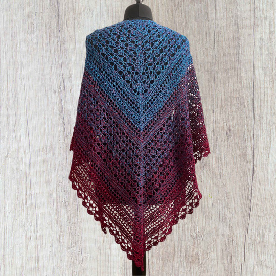 With this pattern you can decide if you want to crochet your shawl only in the first pattern, or with interruptions as in the cover picture.