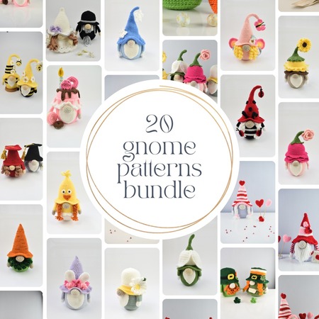 The big bundle of crochet gnomes includes 20 different gnome patterns- from bugs to flowers, from Valentine's to wedding gnomes!