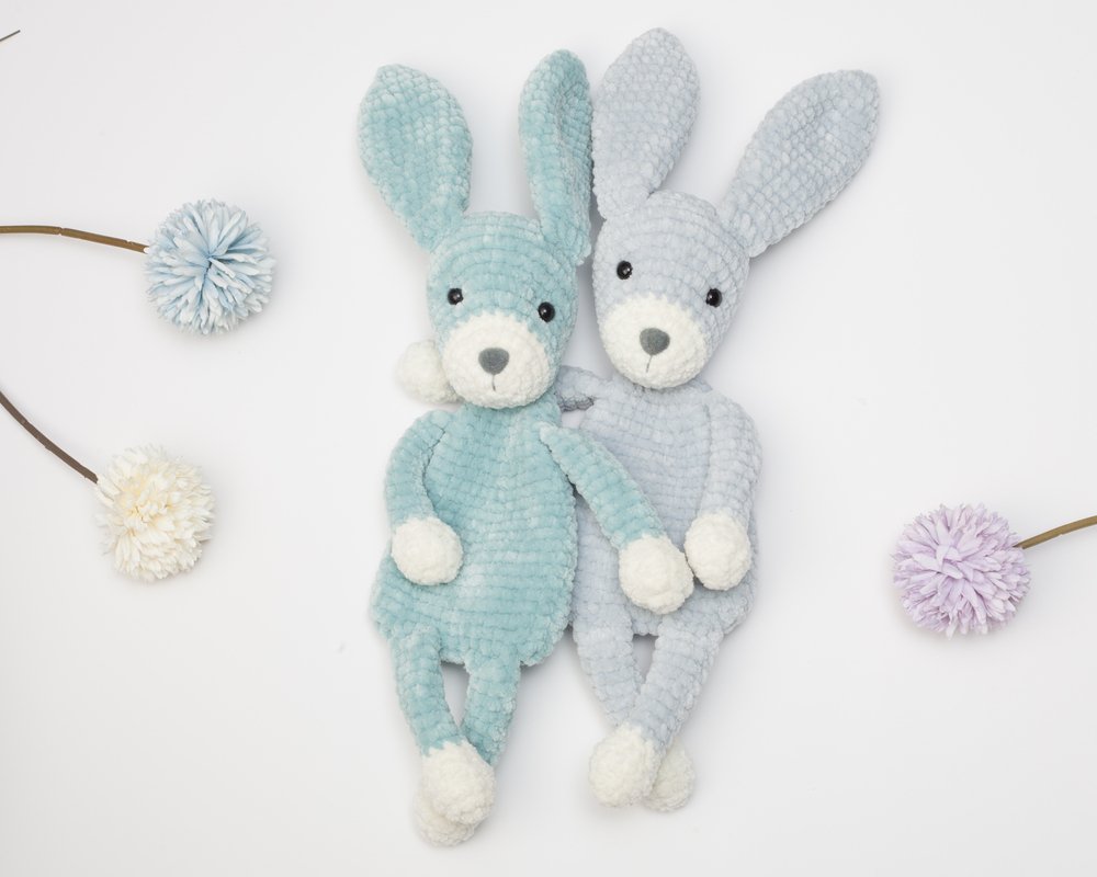 If you use the yarn and hook indicated, the bunny snuggler will be about 30 cm (11.8 inches) tall. You can make it bigger or smaller using another type of yarn but, please, adapt the crochet hook, eyes and nose accordingly.