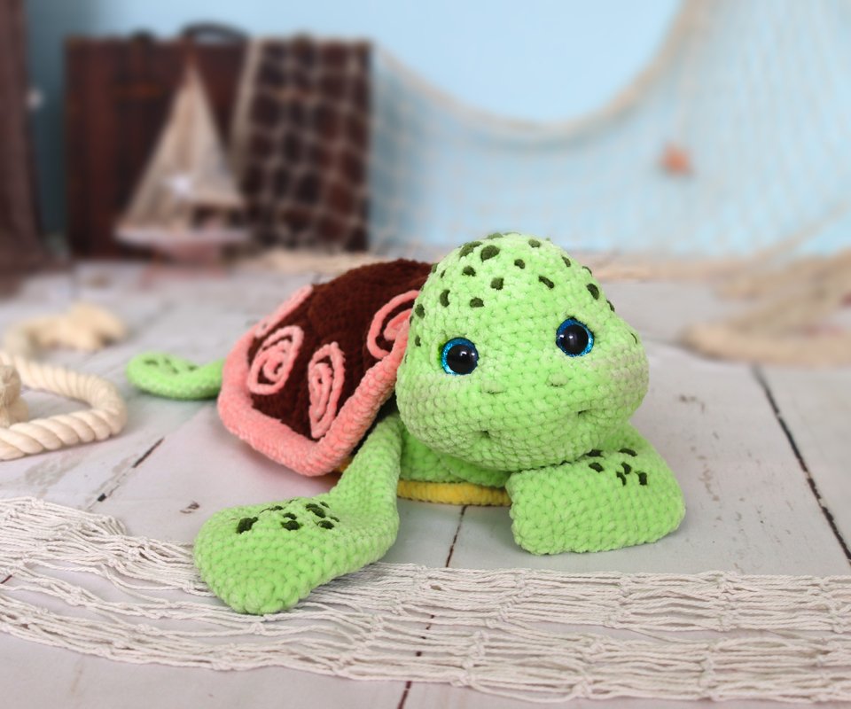a smaller turtle, in the form of a small toy. To do this, use a thinner yarn and a suitable crocheting hook.
