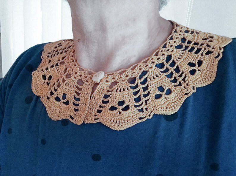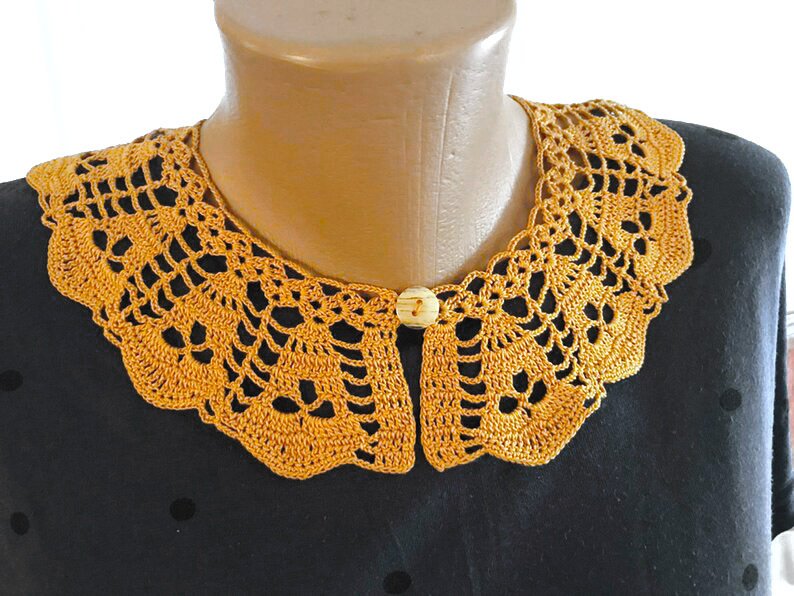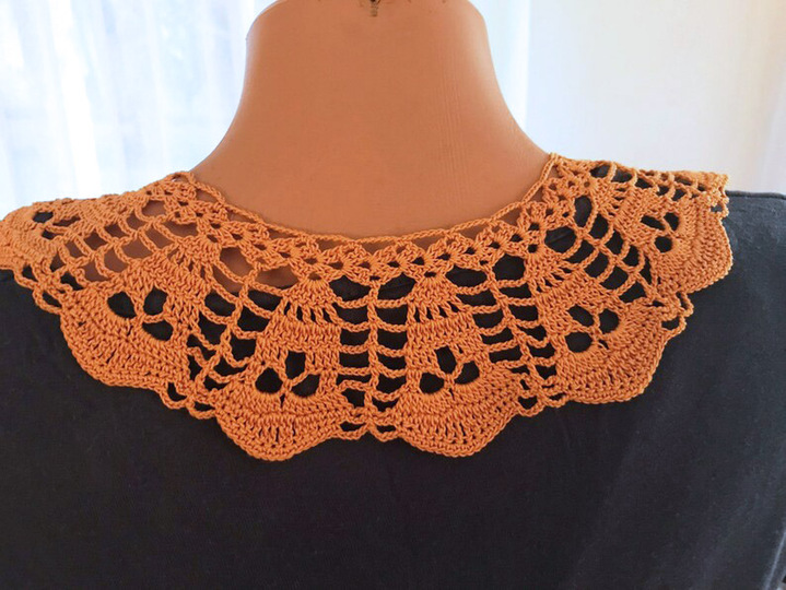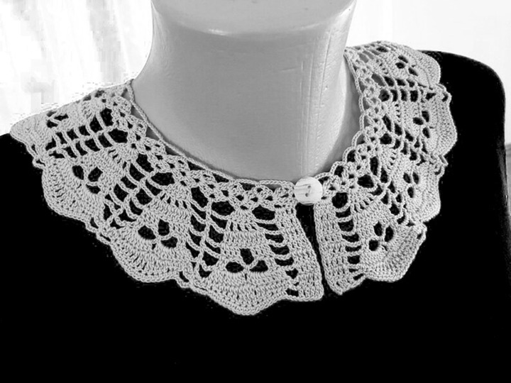 This collar is different than the other collar patterns web there and is a unique design that gives great results.This pretty skull collar, designed by me, is a lovely piece of a little project that will make a great difference. Pretty up any sweaters, dresses, blouses or T-shirt with a plain neckline with this lacy collar. Also, work up this bright and beautiful crochet collar for a stylish piece of daily or any party clothing. I’m very excited to share with you. If you love making handmade gifts these crochet piece will help you find a great gift. This pattern shows that how this design of crochet. You can work this pattern using same thread and similar thread or color.