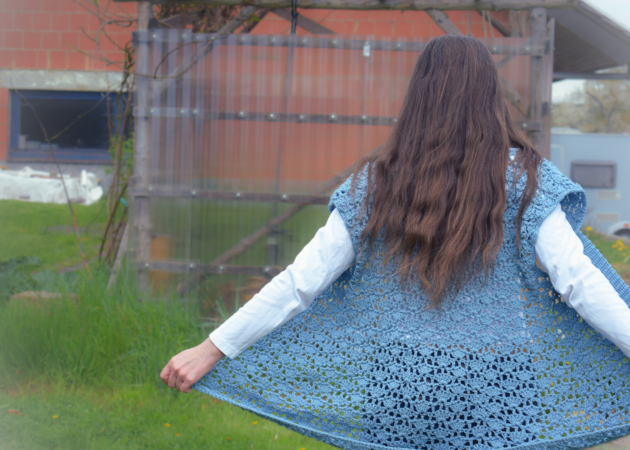 With the help of this crochet pattern you can crochet a light summer jacket without sleeves. The special thing about this vest is a beautiful lace pattern, which makes up almost the entire vest / cardigan. Only at the front and around the neck is a full-length collar crocheted. The best thing is that the vest is completely crocheted and no sewing is necessary.