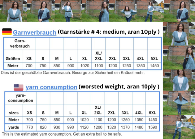 Yarn consumption and sizes: Details can be found in the thumbnails
