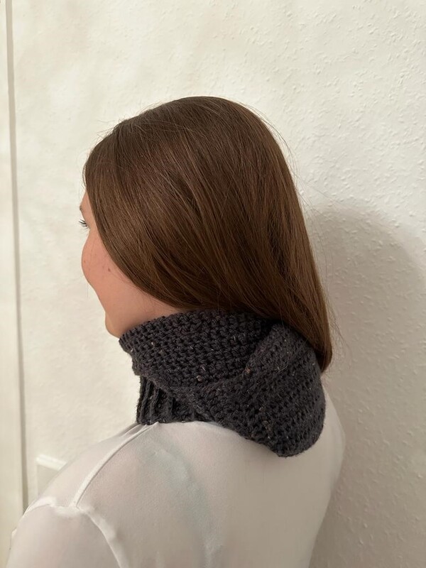 If desired, the hood can be pulled down to the back and worn as a tube scarf.