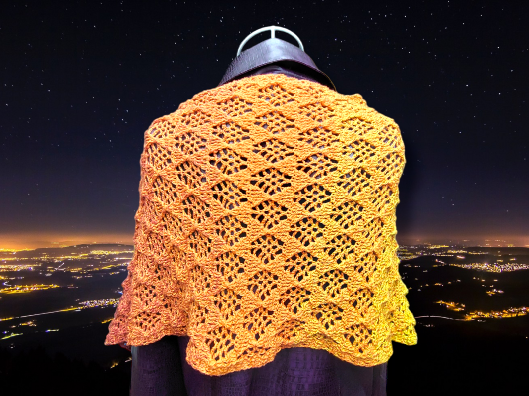 "Starshine BE" is a new pattern reminiscent of a sea of stars. With its eye-catching pattern, this scarf / or stole is an absolute eye-catcher! The length and width can be chosen as often as you like, as well as crochet from the narrow or wide side.